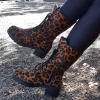 Bota animal print em pelo (couro) com estampa de onça. Toda forrada em pelo, até a palmilha.